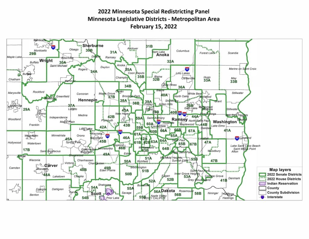 On Tuesday Feb. 15, a 5-member Minnesota Judicial Branch Special Redistricting Panel formed in 2021, adopted a congressional and state legislative district map. The court released its final orders for both the congressional and legislative map and explained the panel’s approach to redrawing the maps.